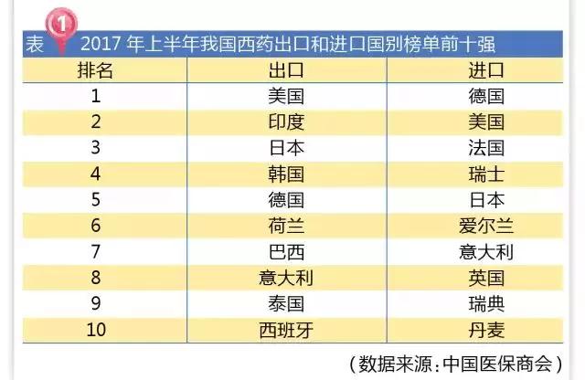 我国西药类产品在上半年出口到200个国家和地区,其中对前十大目的国的出口额占比高达57.5%。