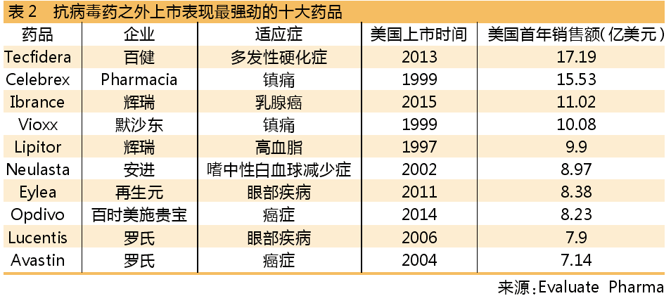 对于像富马酸二甲酯、Ibrance等上市表现强劲的药物,更值得注意的是,它们是市场上新类型药物中的首款产品。