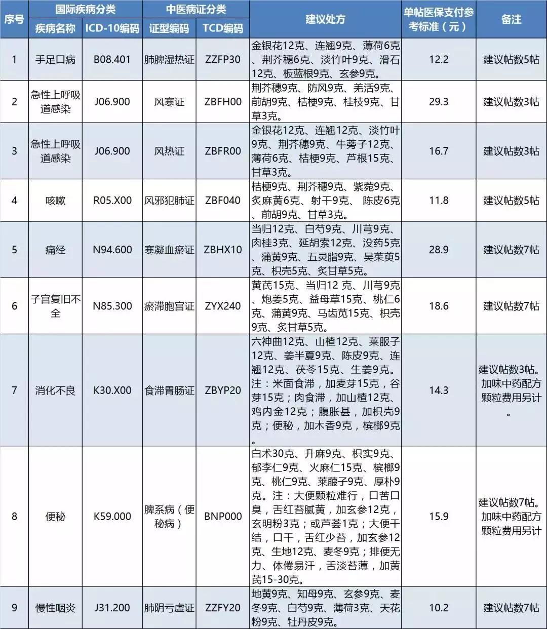 浙江省的通知要求,各地根据附件所列基层中医门诊常见病建议处方和单帖医保支付参考标准,结合当地实际,制定相应病种医保支付标准。