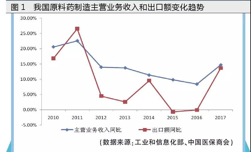 医药网5月29日讯 原料药是我国制药产业的重要组成部分,在经历多年高速增长后,我国已成为全球最大的原料药生产和出口国。2017年我国化学原料药制造主营业务收入达到4991亿元,同比增长14.68%;出口额达到291亿美元,同比增长13.7%,增速出现一定程度的恢复。