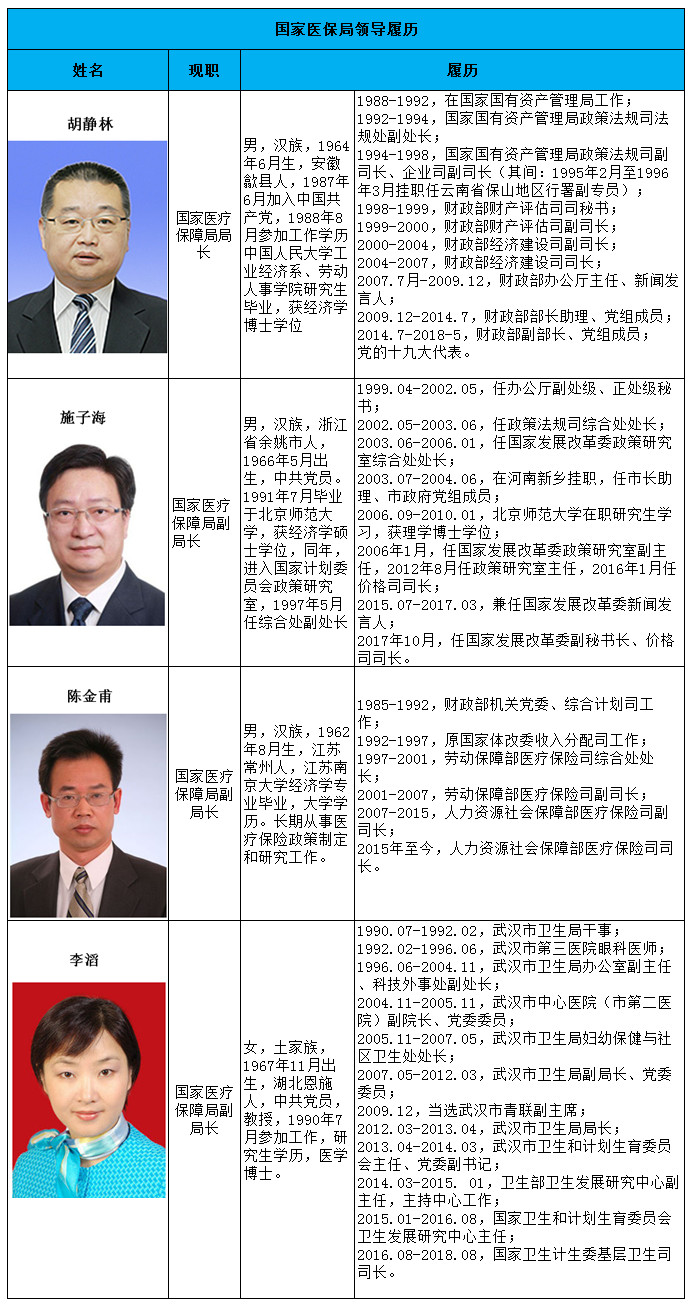 比如,局长胡静林来自于财政部,有经济学博士研究背景,有利于更好的和财政部沟通医疗基金拨款,从而做出的安排;