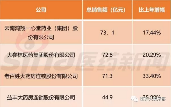2017年中国四大上市药店销售额