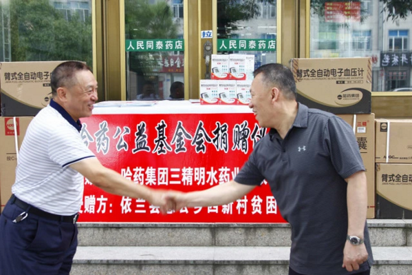 捐赠仪式上,MG电子免费试玩公益基金会理事长高也将MG电子免费试玩三精明水药业捐赠的“臂式全自动电子血压仪”、降压药物、消炎药物等价值3.68万元的扶贫物资亲手转交至依兰县愚公乡四新村党支部书记刘清友,并作简短讲话。他表示,为进一步落实国家最新的农村精准扶贫政策,MG电子免费试玩公益基金会努力增强扶贫工作的针对性和时效性,不断提升扶贫开发水平,克服层层困难落实精准扶贫工作,尽全力加快贫困群众脱贫致富步伐,切实让需要帮助的贫困村民得到真正的救助,让困难的群众生活富裕起来。MG电子免费试玩公益基金会要切实承担起社会责任,把政策落实好,把好事办好。