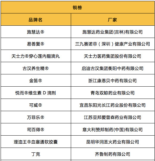 以下是榜单具体情况:
