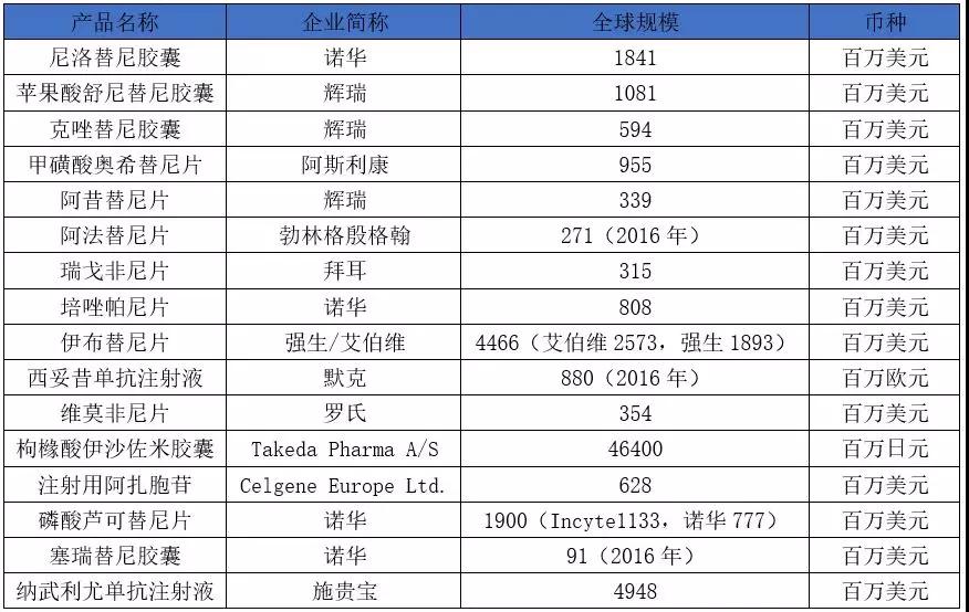 在所列的16个进口品种中,也有2018年在国内新获批上市的全球重磅品种,如全球销售额近50亿美元的纳武利尤单抗注射液。