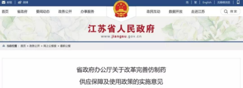近日,江苏省人民政府发布《关于改革完善仿制药供应保障及使用政策的实施意见》(以下简称《意见》),共有15条措施,旨在促进仿制药研发,保障百姓用药需求。