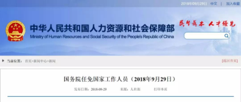 9月29日,人社部发布国务院任免国家工作人员消息。国务院任命陈时飞、颜江瑛(女)为国家药品监督管理局副局长。