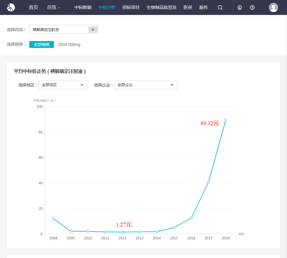 对照上表我们可以看到,碘解磷定的价格,也已经从1.94元/支涨到98/支,涨价幅度将近50倍。