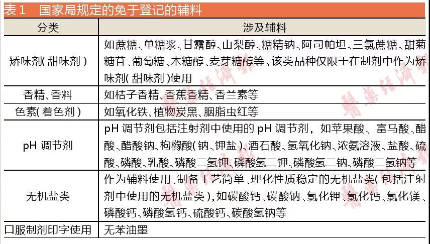 部分辅料可免登记