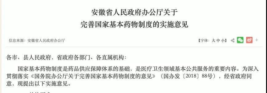 日前,安徽省人民政府办公厅出台《完善国家基本药物制度的实施意见》(以下简称《实施意见》。