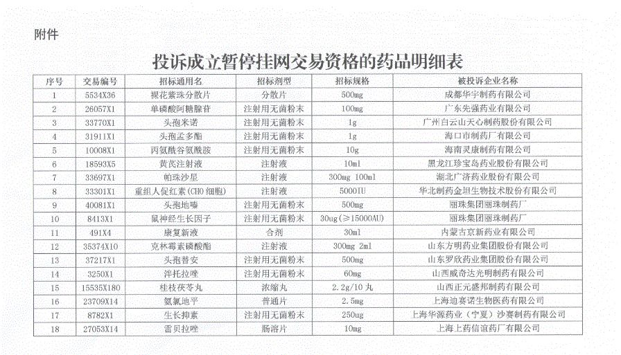 2018年10月,甘肃省公共资源交易局发布“2018年甘肃省关于取消部分药品中标挂网资格的通知(第二十批)”,18家药企的29个药品因生产线改造、成本上涨等原因,已无法保障省医疗机构的正常供应,申请暂停或撤销中标挂网资格。
