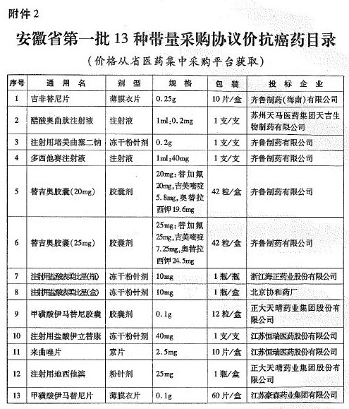 各级公立医疗机构要按照“17+13+X”种抗癌药国家谈判和安徽省级带量采购确定的价格进行网上集中采购、零差率销售,不再组织二次谈判议价。