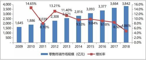 全国零售终端市场规模(亿元)及增长率