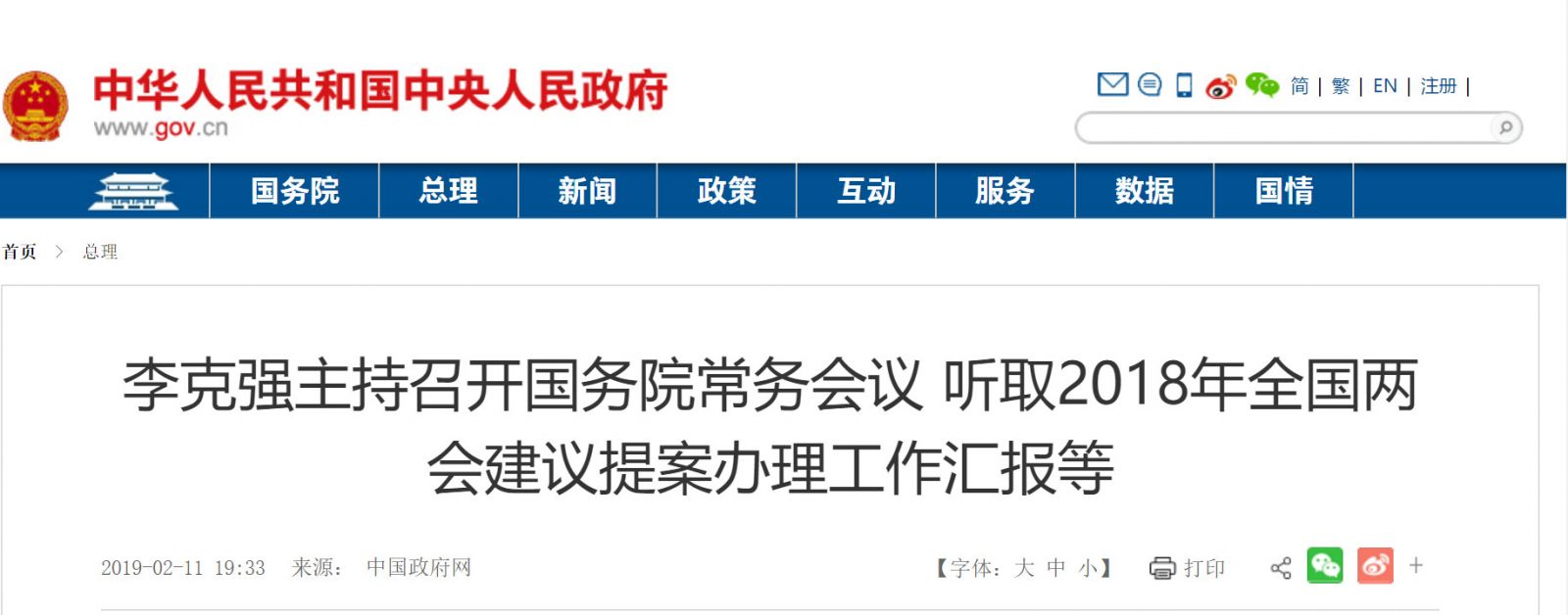国务院总理2月11日主持召开国务院常务会议,听取2018年全国两会建议提案办理工作汇报,部署加强癌症早诊早治和用药保障的措施,决定对罕见病药品给予增值税优惠。
