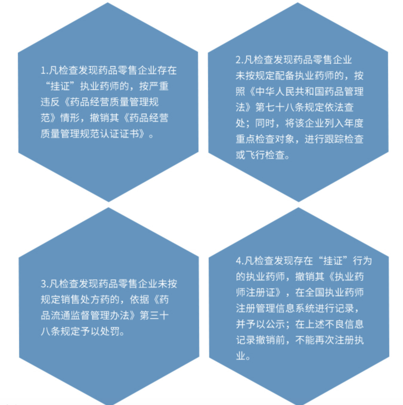 由上文可以看出,凡检查发现药店存在“挂证”现象的,撤销其GSP证书,未按规定配备执业药师的,按照《中华人民共和国药品管理法》第七十八条规定查处。