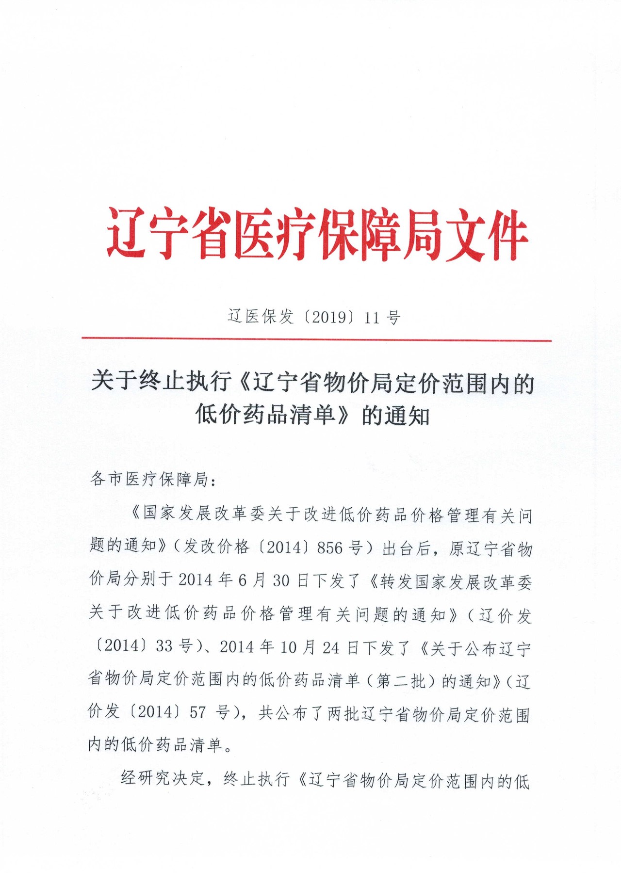 5月24日,辽宁省医保局发布关于终止执行《辽宁省物价局定价范围内的低价药品清单》的通知(以下简称《通知》)。