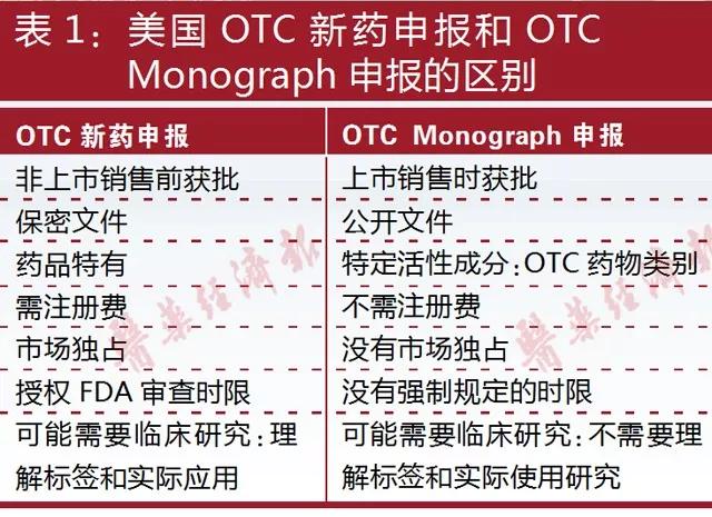 目前,美国约有800多个药物活性成分对应10万种药品可以归为非处方药(OTC)。在美国,申报注册非处方药主要有两个途径:一是向FDA递交非处方药的新药申请(NDA),以新药递交流程处理;另一个是通过非处方药Monograph申请,只要所申报的药品在Monograph上并且按照Monograph要求生产配方,则无需FDA批准就可上市。