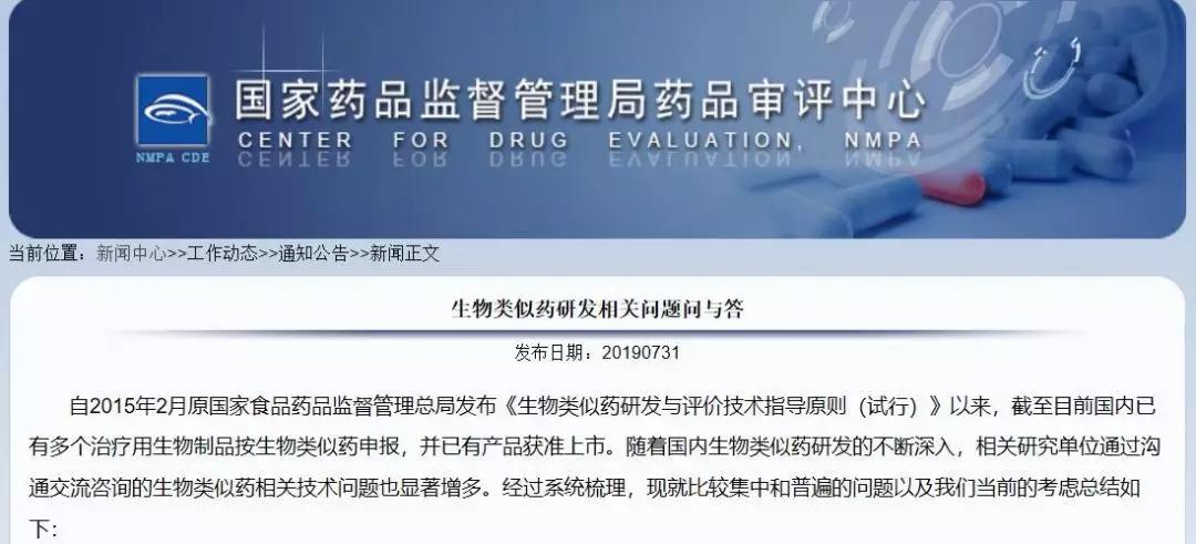 医药网8月1日讯 7月31日,国家药品监督管理局药品审评中心(CDE)官网发布《生物类似药研发相关问题问与答》,CDE方面表示,随着国内生物类似药研发的不断深入,相关研究单位通过沟通交流咨询的生物类似药相关技术问题也显著增多,经过系统梳理,就比较集中和普遍的问题以及监管考虑进行了针对性总结。