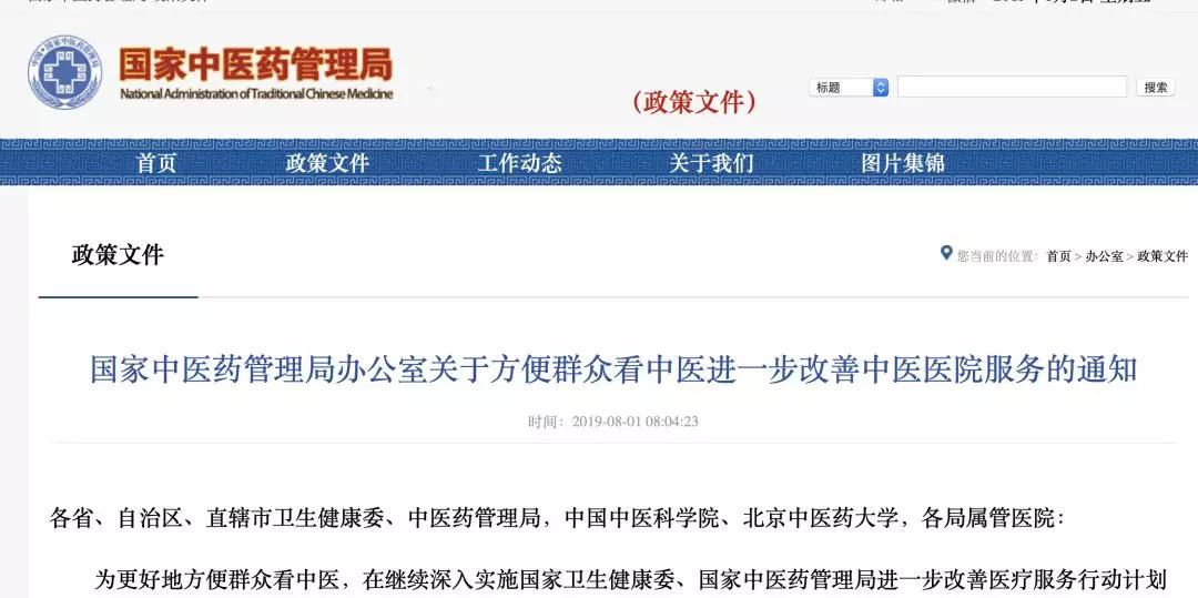 8月1日,国家中医药管理局发布文件《关于方便群众看中医进一步改善中医医院服务的通知》(以下简称《通知》)。