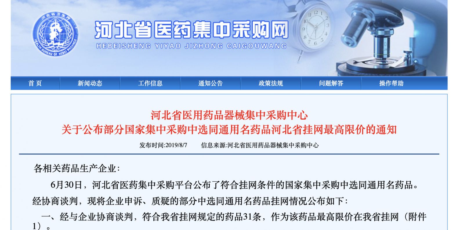 这份通知的出现主要起源于河北省6月26日发布的文件《关于请国家集中采购中选药品同通用名生产企业报价的通知》。