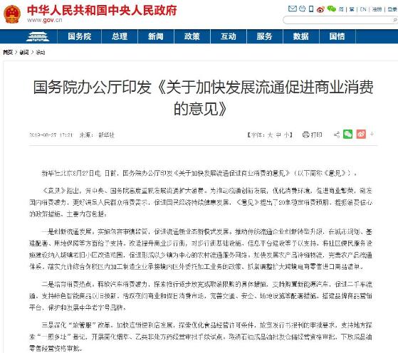 8月28日,国务院办公厅印发《关于加快发展流通促进商业消费的意见》(以下简称《意见》),提出了20条稳定消费预期、提振消费信心的政策措施。其中,明确提到要加快连锁便利店发展,开展简化烟草、乙类非处方药经营审批手续试点。