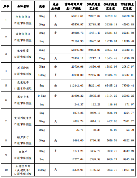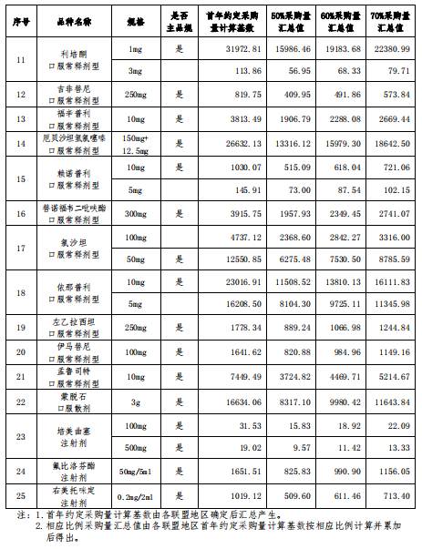 此次文件披露的采购品种为阿托伐他汀口服常释剂型等25个品种,如下图: