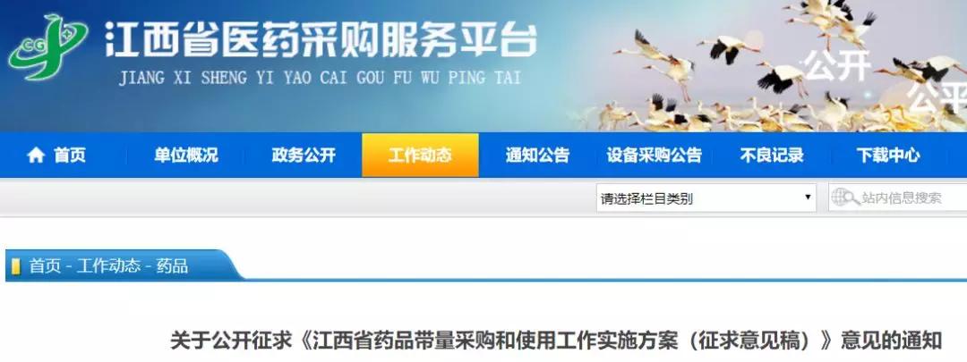 9月1日,江西省医药采购平台发布《江西省药品带量采购和使用工作实施方案(征求意见稿)》,推进全省药品带量采购。