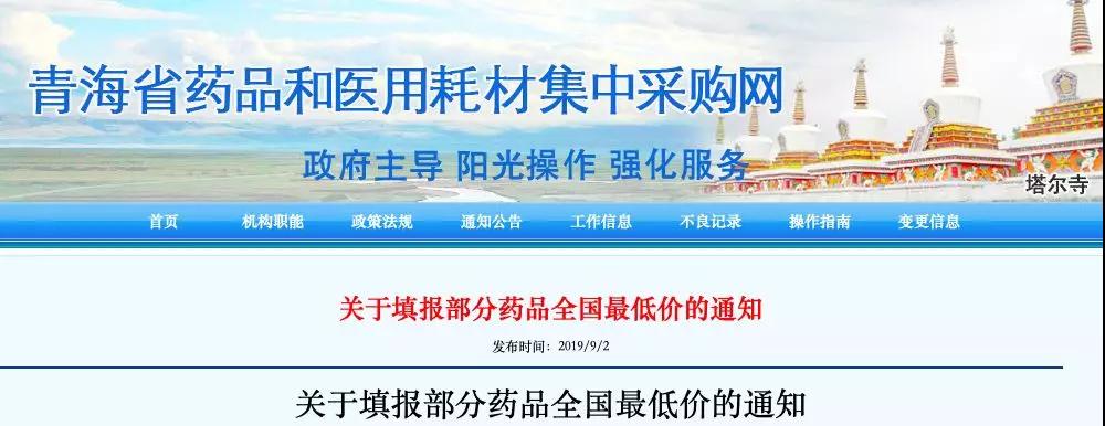 9月2日,青海省药品和医用耗材集中采购网发布《关于填报部分药品全国最低价的通知》(以下简称《通知》)。