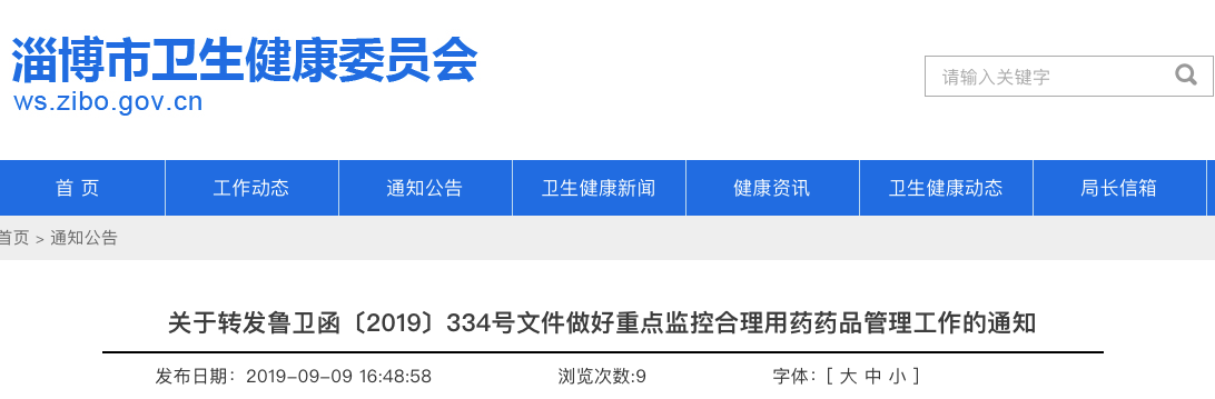 医药网9月16日讯 近日,山东省淄博市卫健委发布《关于转发鲁卫函〔2019〕334号文件做好重点监控合理用药药品管理工作的通知》,同时下发《淄博市重点监控合理用药药品目录》。