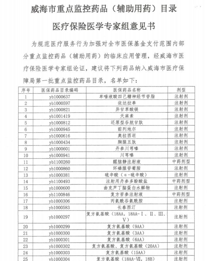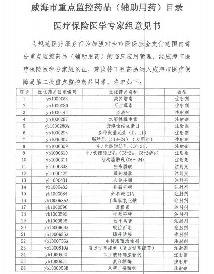 截至目前,威海市已经下发了两批重点监控目录,第一批为27个品种,第二批为85个品种。