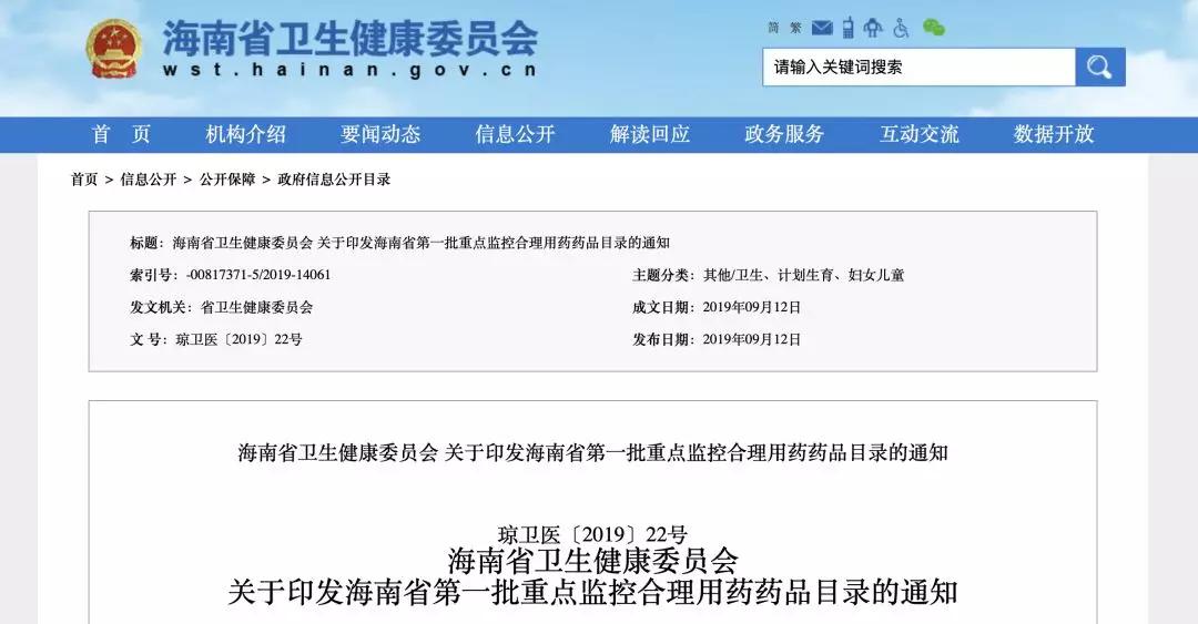 近日,海南省卫健委发布了《第一批重点监控合理用药药品目录》。