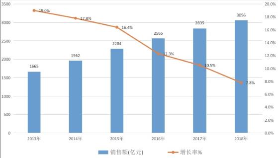 米内网发布的《2019年度中国医药市场发展蓝皮书》显示,在县级公立医院改革的推动下,去年(2018)县级公立医院药品销售额3056亿元,同比增长7.8%,高于同期我国所有公立医院整体平均增速(5.3%)。同时,从销售渠道占比来看,县级公立医院药品销售额占比也呈逐年扩大趋势。