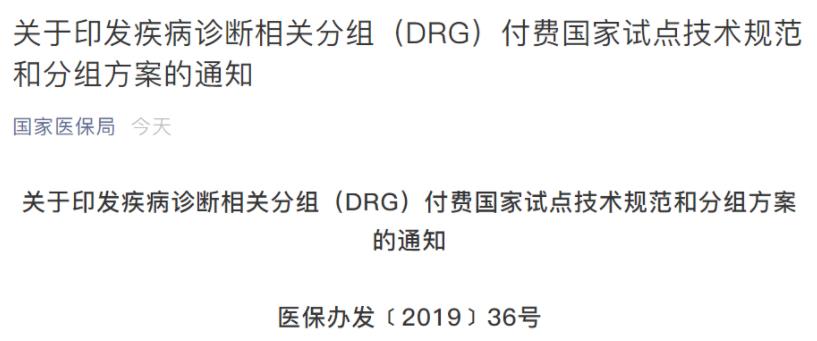 医药网10月24日讯 为贯彻落实医保支付方式改革任务,切实做好疾病诊断相关分组(DRG)付费国家试点工作。10月23日,国家医保局下发《关于印发疾病诊断相关分组(DRG)付费国家试点技术规范和分组方案的通知》(医保办发﹝2019﹞36号)。