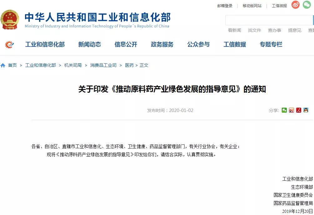 医药网1月6日讯 1月2日,由国家工业和信息化部、生态环境部、国家卫生健康委员会、国家药品监督管理局四部门联合印发的《推动原料药产业绿色发展的指导意见》(以下简称《意见》)挂网,提出鼓励优化产业资源配置,推进绿色生产技术改造,提高大宗原料药绿色产品比重,加快发展特色原料药和高端定制原料药,依法依规淘汰落后技术和产品。此外,对临床急需、市场短缺的原料药予以优先审评审批。