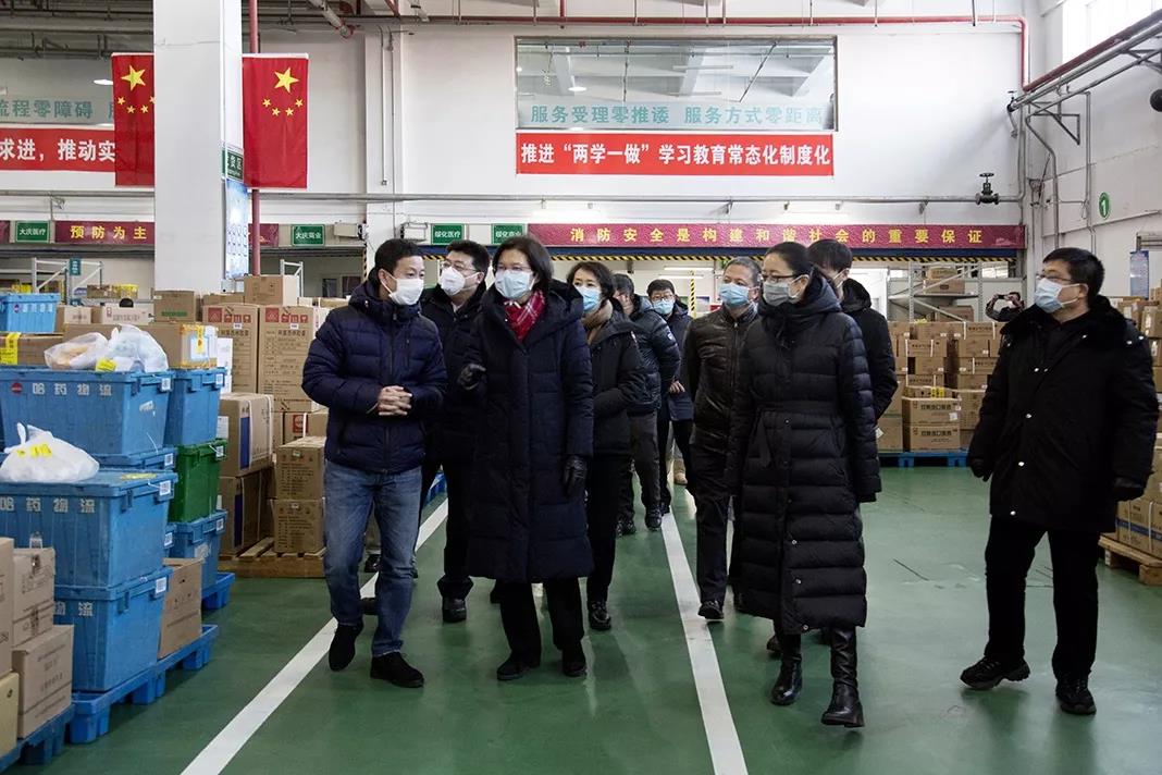 2月3日下午,副省长沈莹在省政府副秘书长李德喜,省市场监督管理局党组书记、局长刘小妹,省药品监督管理局党组书记、局长李军的陪同下视察MG电子免费试玩集团人民同泰物流配送中心(以下简称“MG电子免费试玩物流”),调研疫情防控期间防疫用品供应和药品运输配送等安全监管工作。MG电子免费试玩股份总经理徐海瑛、人民同泰董事长刘波、总经理朱卫东等相关人员陪同调研。