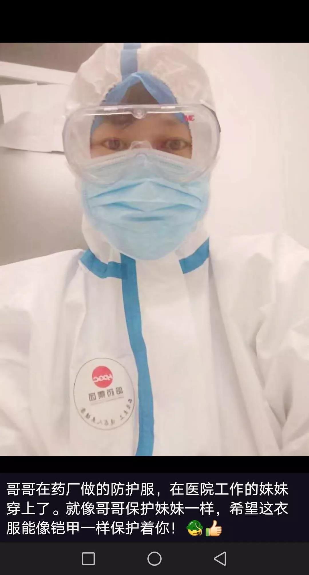 “是啊妹妹,我就在这个防护服生产工段,你守护患者,哥守护你。”