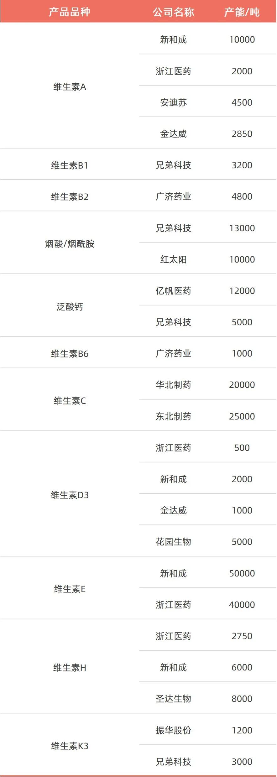 目前,国内生产维生素的上市企业包括新和成、浙江医药在内共有十多家,部分企业目前已成为全球的龙头企业。