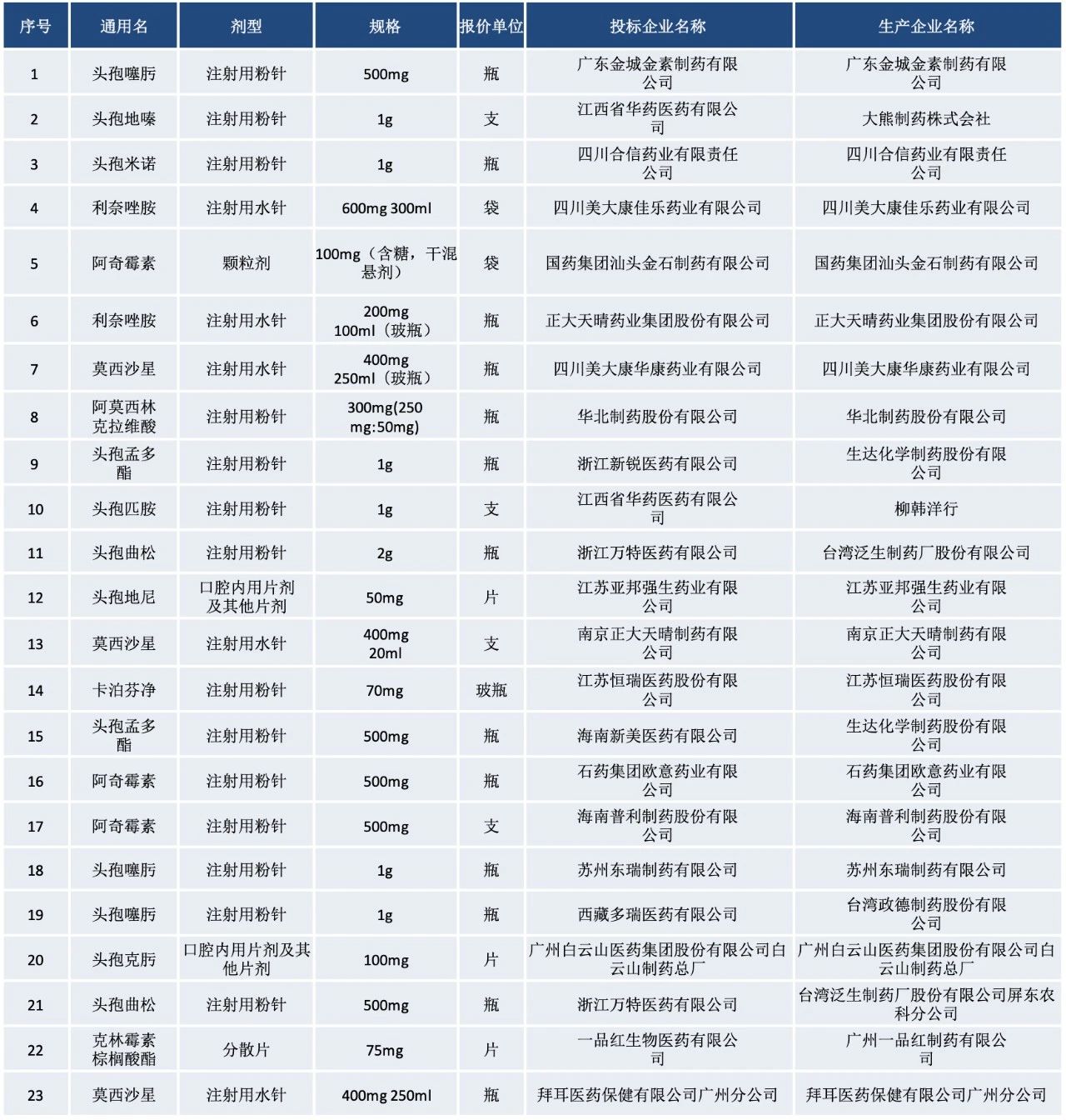 当然,出了市场影响的考量外,抗菌药物可替代性强,临床短缺风险小也是湖南以其作为切入口的原因。由于抗菌药物生产企业多,竞争也较为充分。湖南此次公开价格中就有7个药品最小包装中标价格低于0.5元,其最低的中石药欧意集团的头孢羟氨苄(125mg/袋)中标价格仅为0.25元。